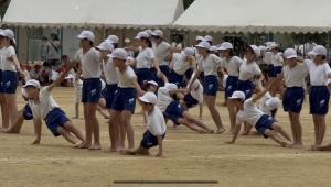 6年生の1種目目は組体操で、練習の時は配置や演技をなかなか覚えることができず苦戦していたようですが、仲間と声をかけ合い、息を合わせて力を合わせてすばらしい演技をする姿を見て感動しました。